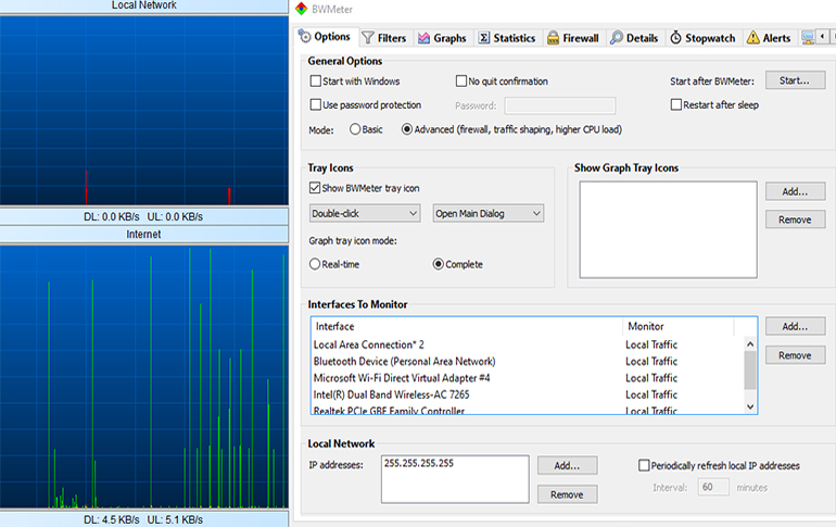 With BWMeter, you can easily prevent slow connection speeds and unwanted network connections through clear, visual reporting of your bandwidth and internet usage.
